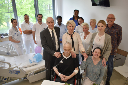 heiratet im Kreis von Wegbegleitern, Ärzten und Schwestern