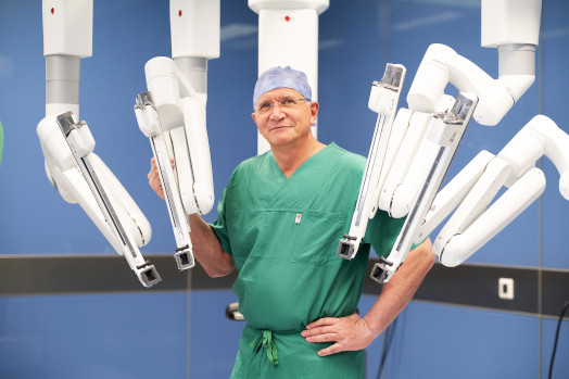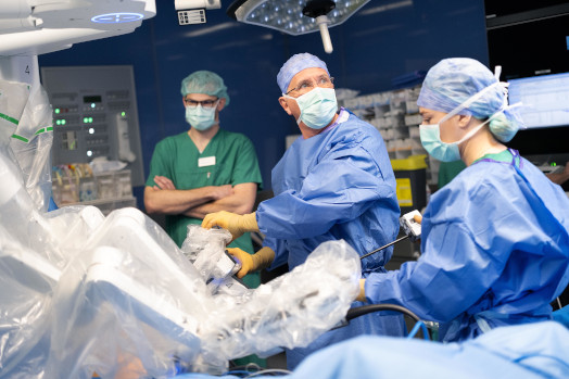 Prof. Dr. Matthias Behrend, Chefarzt der Klinik für Viszeral-, Thorax- und Gefäßchirurgie, operiert bereits seit fünf Jahren mit dem da Vinci-Operationssystem XI. „Mit dieser neuen Geräte-Generation können wir unsere Patienten noch gezielter operativ versorgen als bislang. Die Operationstechnik ist schonender, die Komplikationsraten geringer und die Genesung kommt schneller voran. Der Zusatznutzen der neuen Technik besteht also nicht nur für uns als Operateure, sondern vor allen Dingen für unsere Patienten“ betont Prof. Dr. Matthias Behrend weiter.