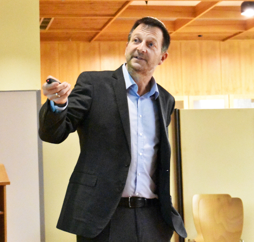 Chefarzt Dr. Christian Bach informierte über den Gelenkersatz an Hüfte und Knie. (Foto: DONAUISAR Klinikum)