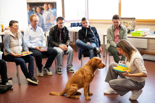 Im Rahmen des Besuchs stellte Anja Schauer das Konzept des Schul- und Therapiehundes vor. Im Mittelpunkt stand dabei „Toffee“, der sowohl im schulischen Kontext als auch in der Klinik als Therapiehund eingesetzt wird. Anschaulich wurde erläutert, wie tiergestützte Interventionen den Lernprozess unterstützen, soziale Kompetenzen stärken und zur emotionalen Stabilisierung beitragen können. „Mit Toffee erlebe ich täglich, wie tiergestützte Intervention Lernprozesse positiv beeinflussen können: Schülerinnen und Schüler öffnen sich leichter, entwickeln mehr Selbstvertrauen und profitieren emotional wie sozial vom Zusammensein mit Toffee“.